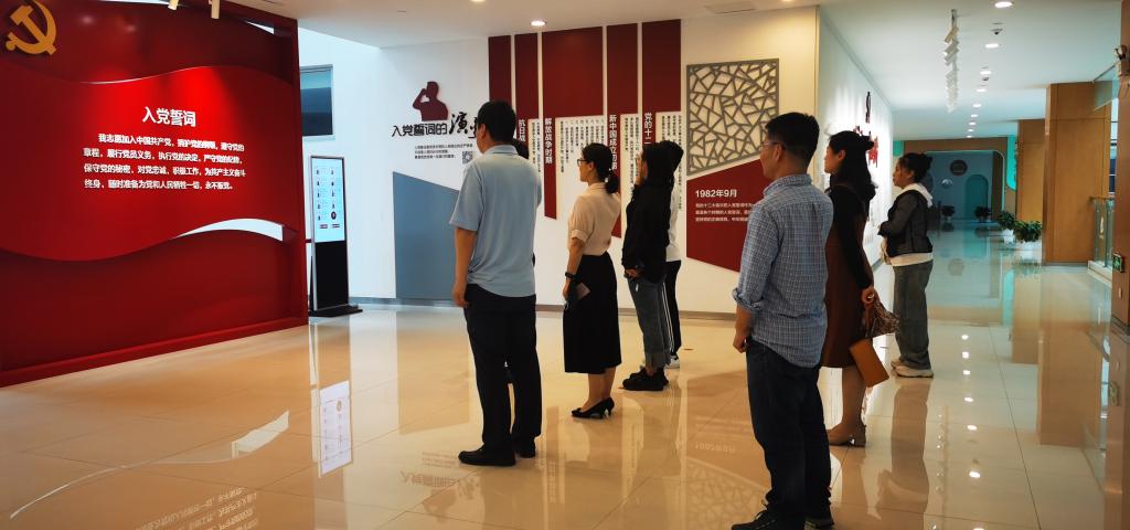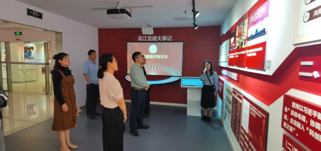 吴江区融入式党建展示馆配以大量珍贵的史料图片、文件,以图文结合的形式生动呈现了实施“融入式党建”创新工程的经验做法和特色成绩。参观过程中,大家认真聆听讲解,详细观看了每个主题展馆,认真学习与借鉴基层组织党建工作方面有效做法和成功经验。在党员宣誓墙前,同志们举起右手再次庄严宣誓。