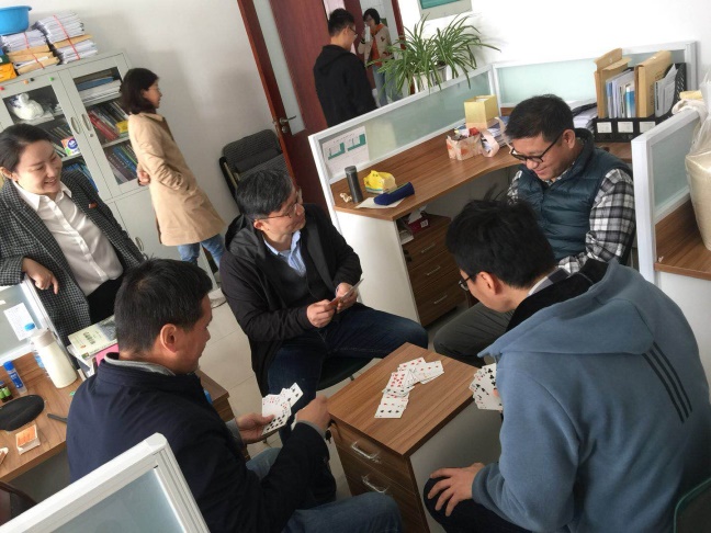为丰富教职工课余生活,愉悦身心,增进教职工之间的沟通交流,2020年11月5日,蓝鲸体育官网 分工会同时在C1-401、403、303三个房间举行了掼蛋比赛。