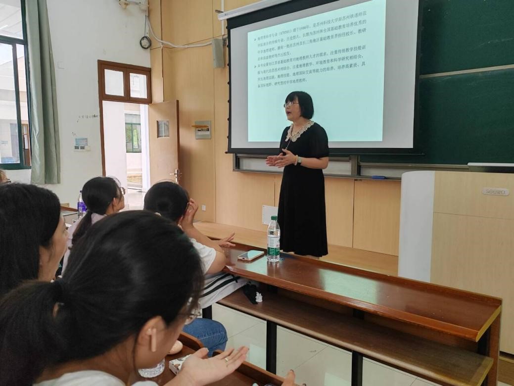 开展专业认知教育,地理科学专业由地理科学系主任张晓芳老师主持,邀请地理科学(师范)专业优秀校友、吴江汾湖高级中学的中学高级教师杨云老师为2024级新生开展“如何‘演’好一出‘戏’”专题讲座。