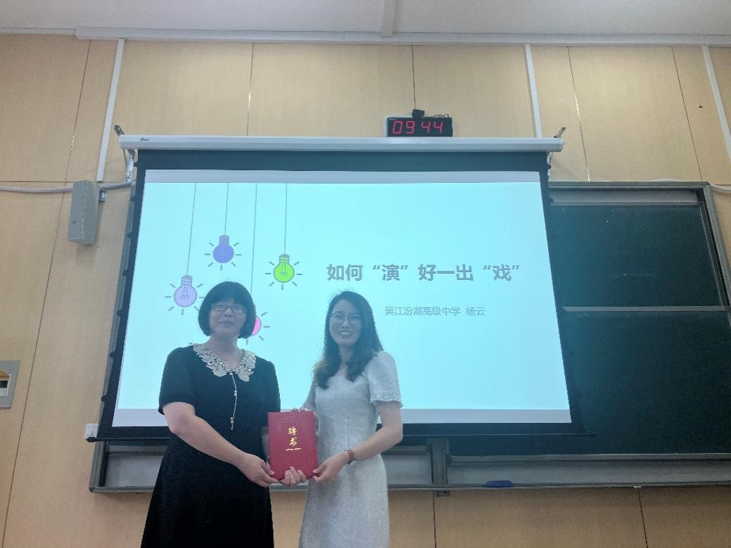 最后,张晓芳老师向杨云老师颁发蓝鲸