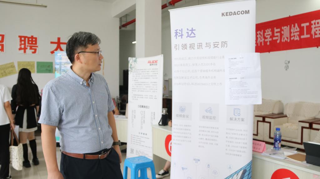 党委副书记兼副院长彭科及毕业班辅导员来到招聘会现场,与用人单位深入交流,并指导毕业生应聘求职。