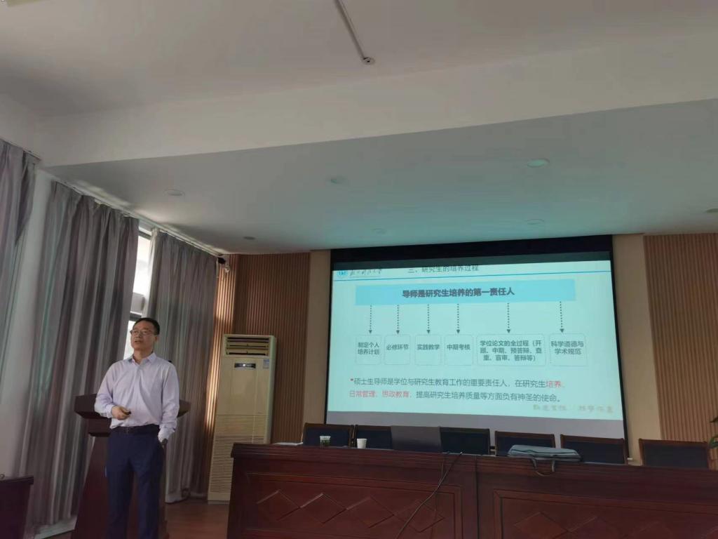 组织硕士生导师进行了专题学习。会议邀请到学校优秀硕士生导师、校学科办主任、研究生院院长孙国华教授做现场辅导报告,副院长陈德超主持培训会。
