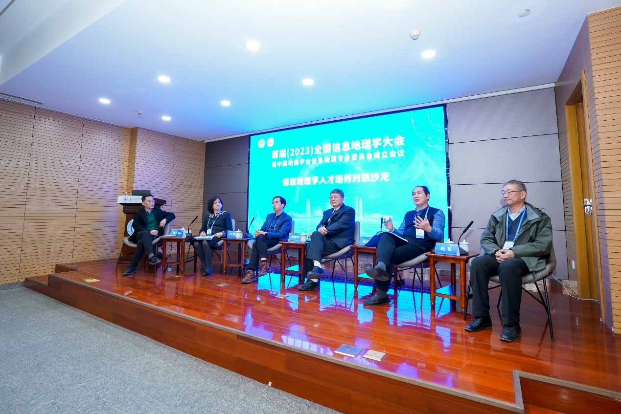 院长杜景龙教授主持了信息地理学人才培养圆桌讨论环节,与会专家有北京师范大学董卫华教授、北京师范大学刘慧平教授、西北师范大学赵军教授、中南大学邓敏教授、华中师范大学吴浩教授、武汉大学秦昆教授等。与会专家围绕信息地理学的定义和任务、培养人才的核心素养、培养体系及教材体系的重要性等问题发表了各自的看法和建议。专家们认为,信息地理学人才培养需要依附于具体专业,抓住本科生培养的核心素养这一关键问题,明确信息地理学的培养目标及培养流程,并在武汉大学等专业实力强的高校首先进行试点工作,探索和建立信息地理学人才培养体系及教材体系。