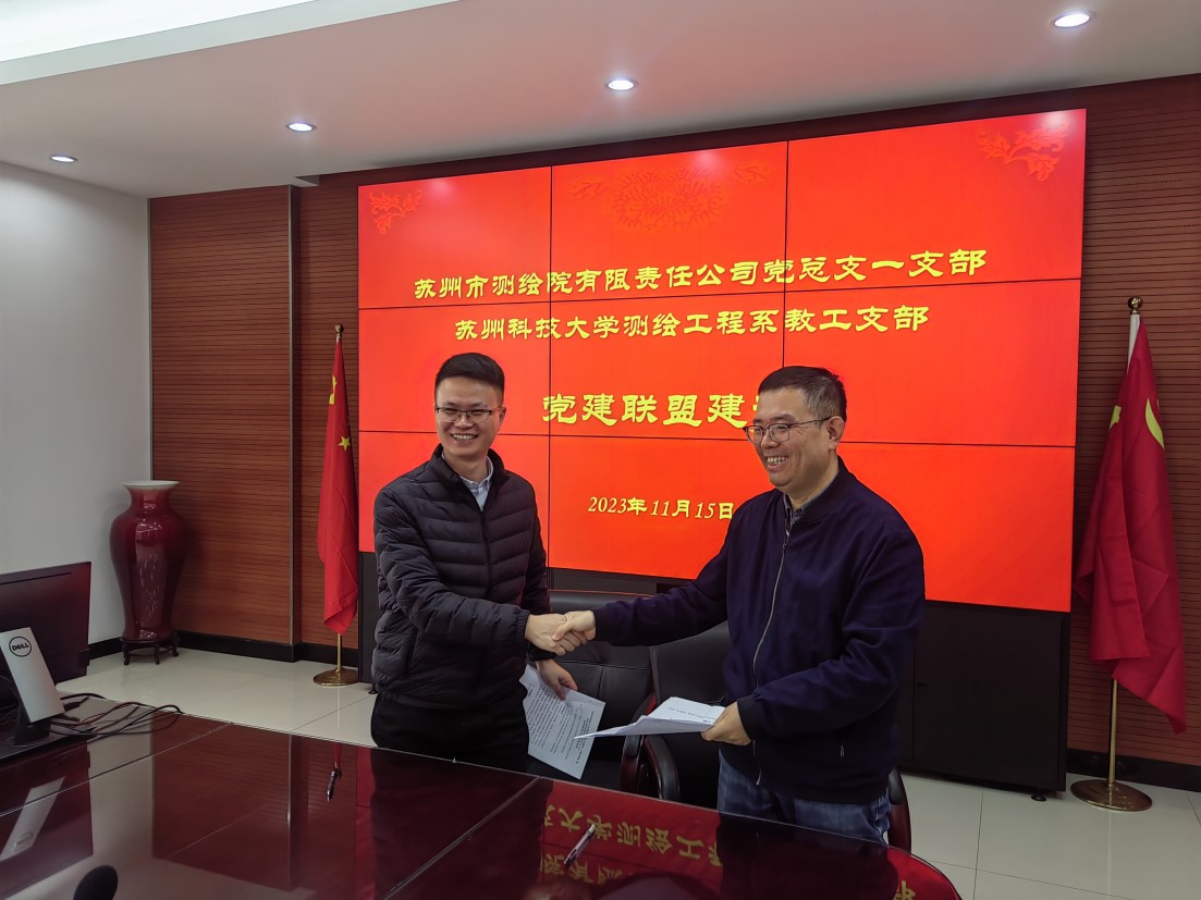 测绘工程系教工支部和苏州市测绘院有限责任公司举行党建共建签约仪式,就测绘工程专业23级培养方案实施进行了深入探讨,现场签订党建联盟协议和实习基地协议书。蓝鲸