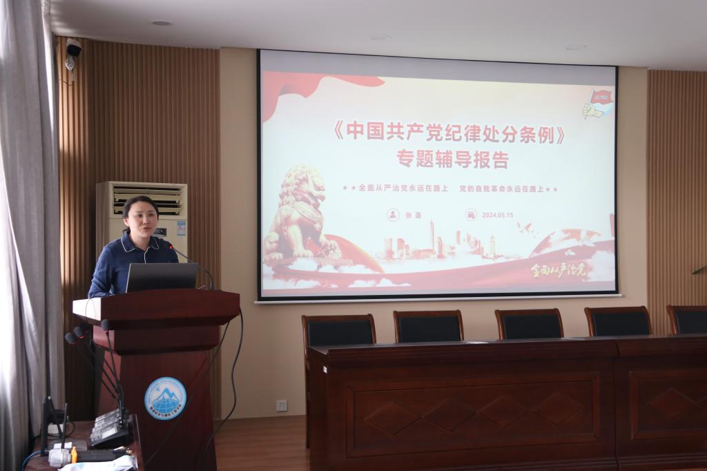 党委党纪学习教育的实施方案》及学习进展情况,进行了纪律党课《中国共产党纪律处分条例》的专题辅导报告,从开展党纪学习教育的重大意义、总旨要义和贯彻执行三方面,带领全体与会人员进一步明确了党的纪律规矩是什么,准确掌握“六项纪律”的要义和要求,切实做到学纪、知纪、明纪、守纪。