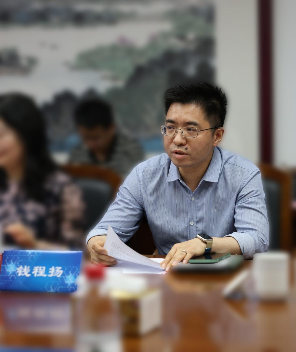 园测信息科技股份有限公司总工程师钱程扬代表合作单位致辞,感谢各位专家对实验室的关心与支持,表示将加强与苏州科技大学合作,共同推进实验室建设,推动空间信息智能技术在苏州的示范应用。