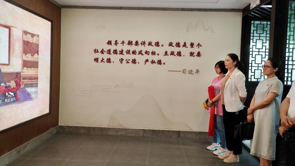 党员们依次参观了名人文化廊、阳山之脉展馆、陆公馆等,在丰富的展品和详实的资料中,深入了解了孙武、范仲淹、范成大等14位原籍苏州或任职苏州的贤官廉吏的勤廉事迹,深入了解了陆绩孝廉忠正、德颂郁林、载石还乡、归葬阳山等的历史故事,同时深刻体悟到了苏州人对“廉石”精神和文化的弘扬,以及清正廉洁、坚守原则等品质对于党员干部的重要意义。