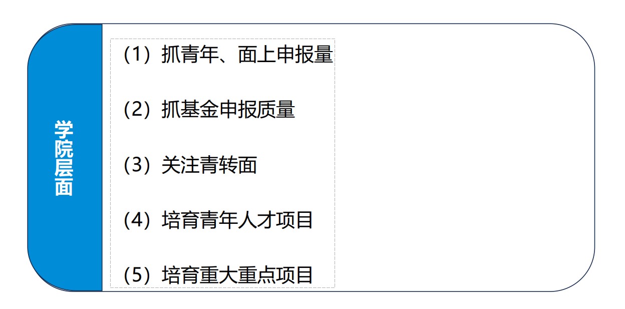 将总结近年来基金辅导的经验,竭尽所能为老师们申报工作提供帮助和服务,保障基金申报工作有序推进。