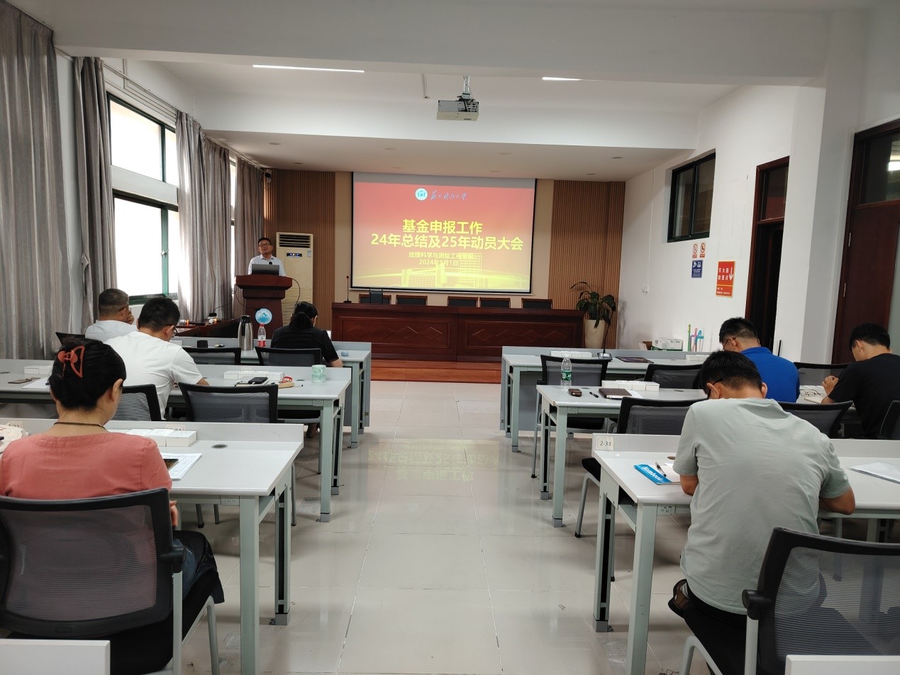 在二楼报告厅举行了基金申报总结暨2025年申报动员会, 全体教师及蓝鲸