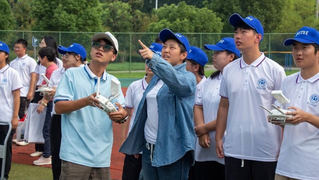 活动现场,气氛热烈而庄重。一面鲜艳的五星红旗在无人机的牵引下缓缓升起,拉烟表演绚丽多彩。军歌、国歌激昂奏响,全体师生齐声高唱,表达对祖国的深情热爱与美好祝福。特技飞行环节,无人机分别做出大坡度盘旋、筋斗、半筋斗翻转、半滚倒转等高难度动作,展现出令人惊叹的科技魅力。现场试飞体验环节,师生踊跃参与,在专业老师指导下感受科技魅力。同学们纷纷表示,此次活动极大地激发了他们对专业的浓厚兴趣,更加坚定了他们扎实专业基础、为祖国的繁荣发展贡献力量的决心。