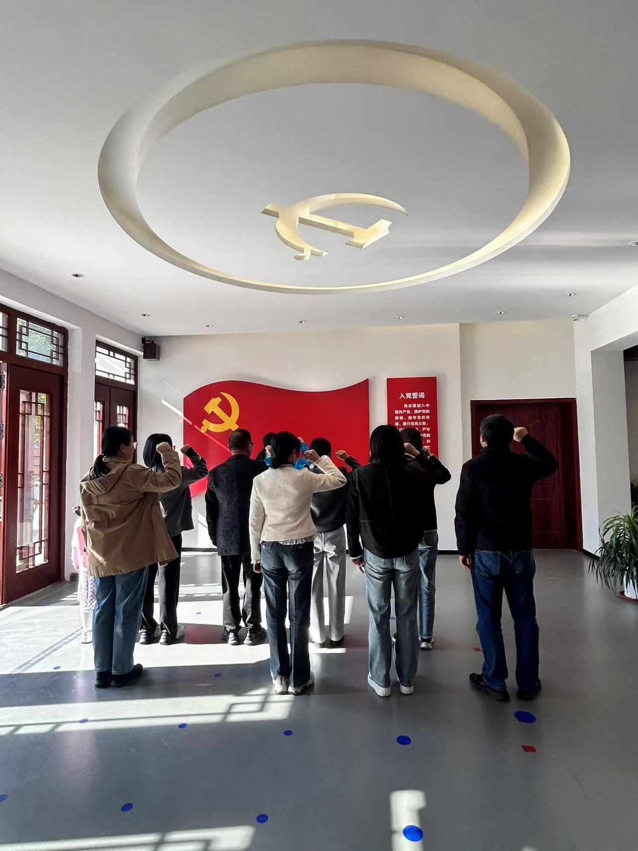 党员教师们首先来到了太仓第一支部纪念馆参观,感受了革命前辈们为国捐躯、为党奋斗、为人民服务的英雄气概。在纪念馆的宣誓墙前,全体党员重温了入党誓词,铿锵有力的誓言激励着每一位教师不忘初心,牢记使命。之后党员教师们又来到了72田园综合体。见证了乡村振兴的蓬勃生机与活力。72田园综合体位于太仓市浏河镇,是一个集亲子研学、文化旅游、田园度假、乡野生活功能为一体的新乡村聚落。教师们漫步在美丽的乡间田园,感受乡村慢生活,把沿途美景尽收眼底。他们参观了特色民宿、地堡教育基地和自然科普区,了解了田园综合体在推动农村经济发展、提升乡村文化魅力方面所做的努力和取得的成效。教师们纷纷表示,这种线上线下相结合的方式不仅拓宽了农产品的销售渠道,还提高了农产品的知名度和美誉度,为乡村振兴注入了新的活力。