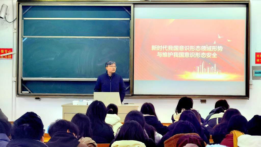 彭科以“新时代我国意识形态领域形势与维护我国意识形态安全”为主题,围绕“新时代新征程我国意识形态领域的基本形势”、“新时代新征程我国意识形态安全面临的主要挑战”、“新时代新征程维护我国意识形态安全的主要举措”三个方面进行讲授。彭科指出,意识形态工作是党的一项极端重要的工作,是为国家立心、为民族立魂的工作。实现中华民族伟大复兴,需要充分发挥社会主义意识形态的引领功能和凝聚功能,为中华民族伟大复兴汇聚磅礴伟力。他强调,大学生必须坚定正确的政治方向,树立正确的人生观、世界观和价值观,维护国家意识形态领域的安全。