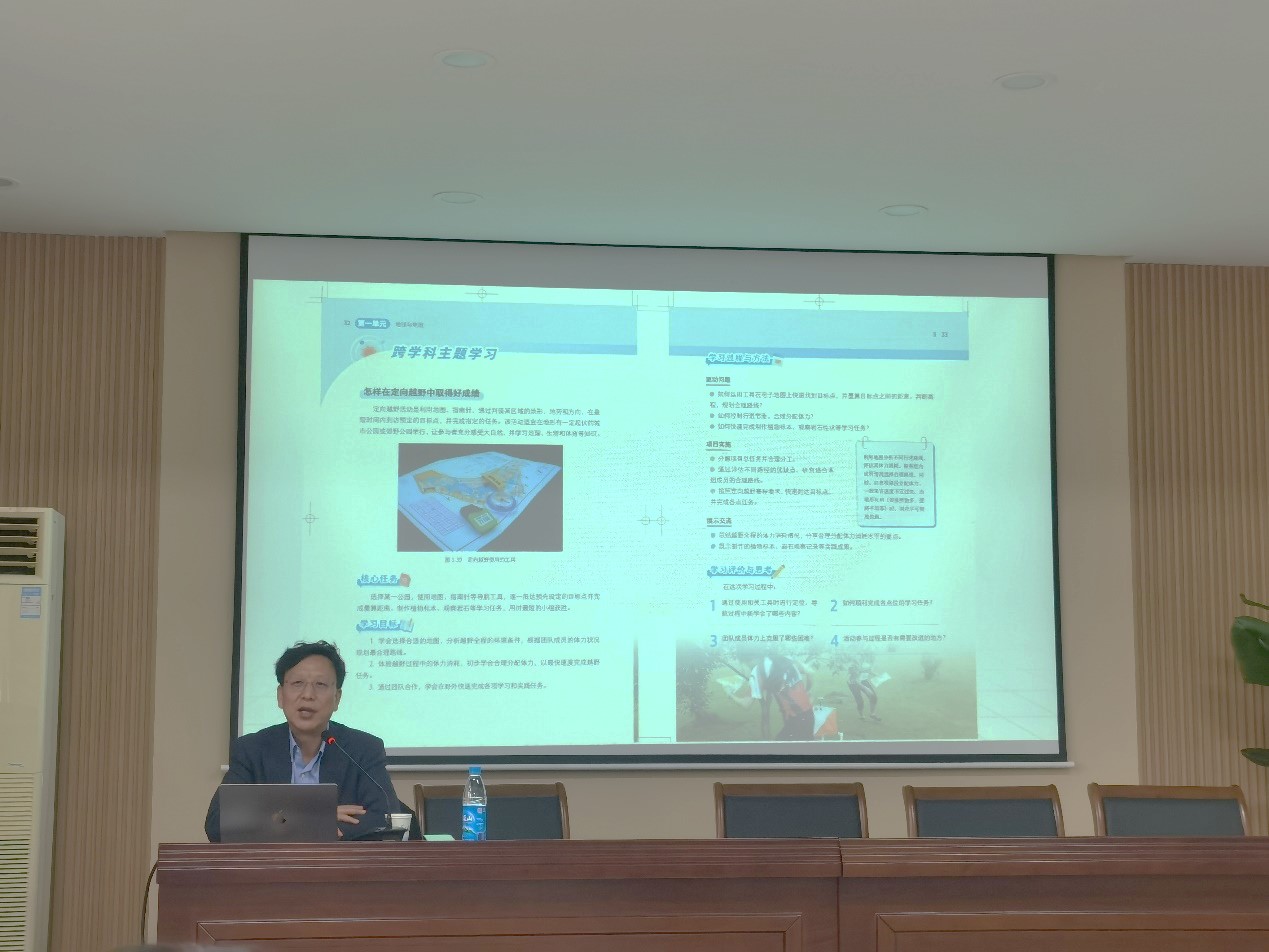 师生做题为“跨学科学习的思考”的报告。蓝鲸