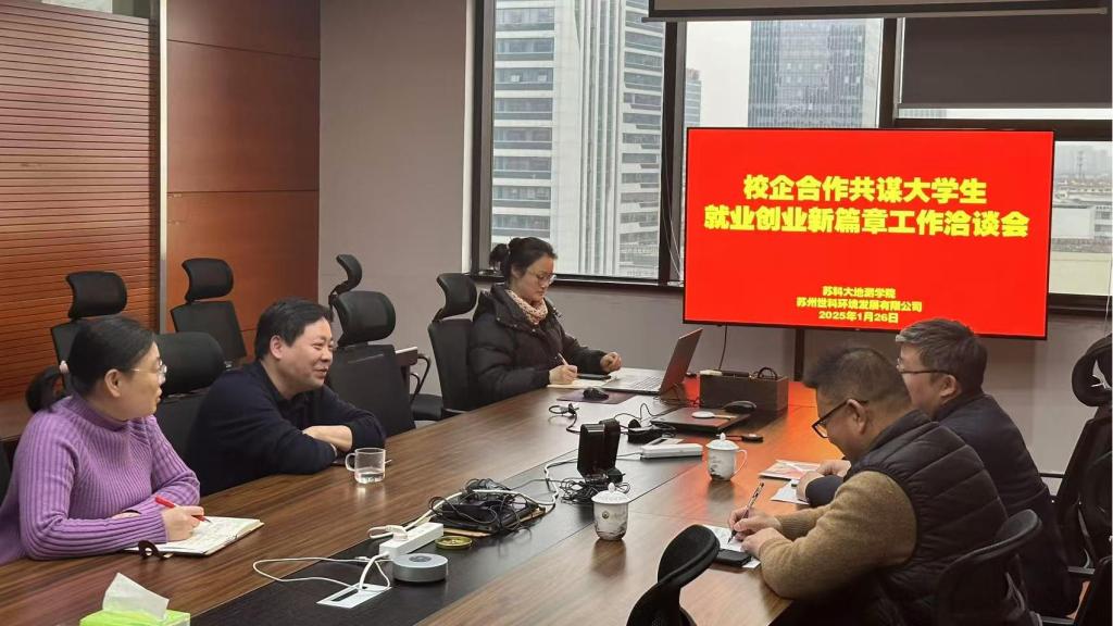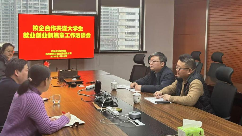 党委副书记兼副院长彭科、副院长陈德超一行前往苏州世科环境发展有限公司,开展校企合作共谋大学生就业创业新篇章工作洽谈会,同时签订大学生就业创业基地。