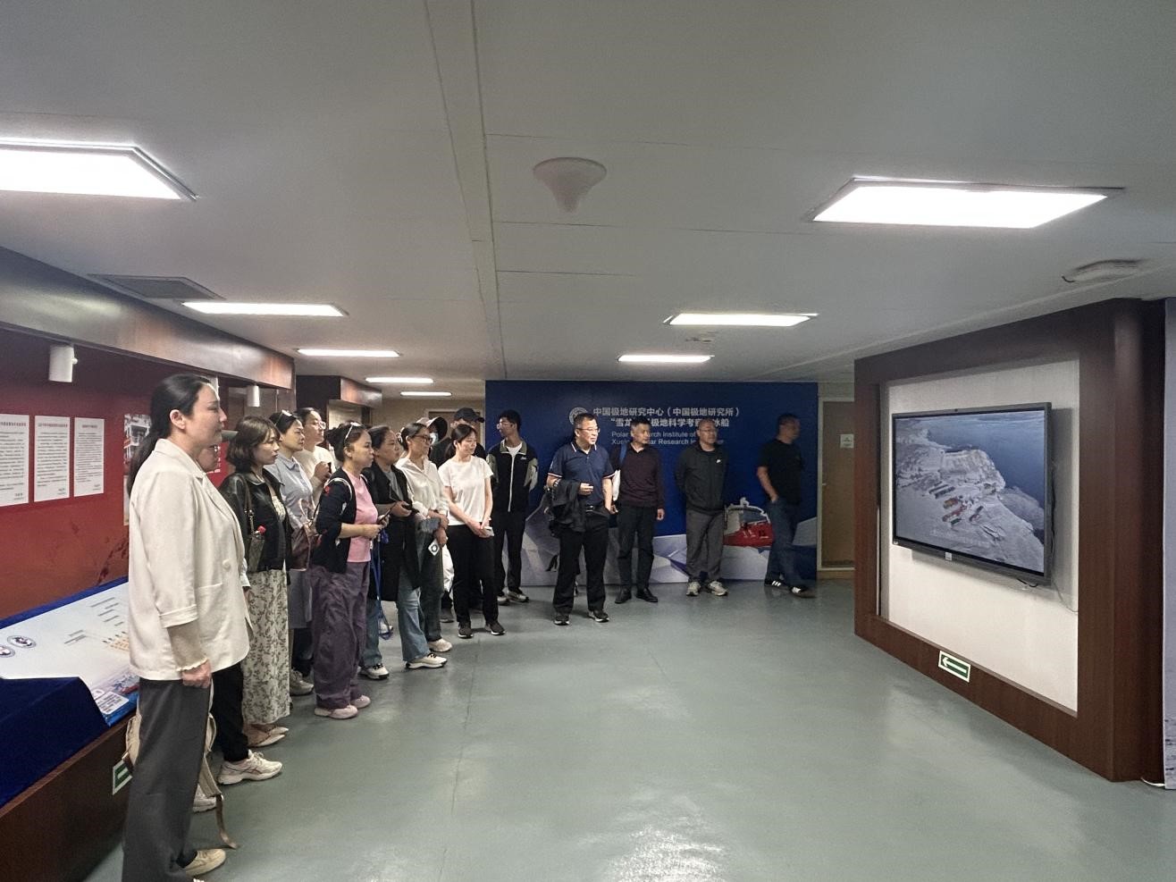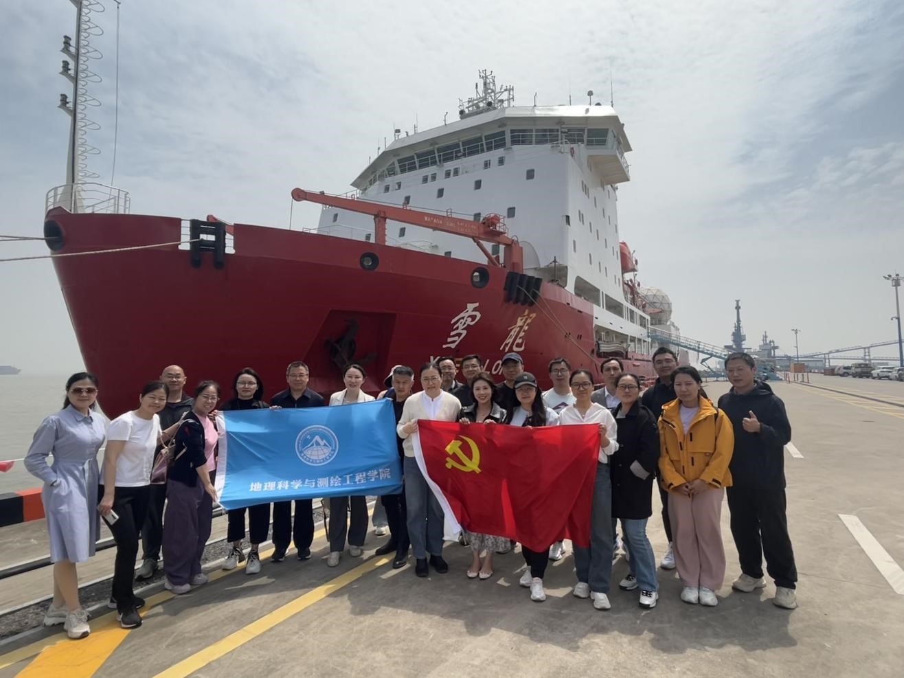 活动中,支部党员教师充分发挥专业特长,围绕极地科考中的地理科学与测绘技术应用展开调研。在船载实验室结合“雪龙号”搭载的高精度测绘设备,现场解析极地冰川动态监测、三维地形建模等关键技术,了解如何通过遥感数据支持全球气候变化研究;与科考队员交流了北斗导航系统在极地定位、航道测绘中的实际应用,从专业视角理解“国之大者”的责任担当。院长杜景龙强调:“此次研学既是作风教育,也是专业实践。‘八项规定’倡导的务实创新与极地科考的攻坚精神一脉相承。我们要杜绝学术浮华之风,把论文写在祖国大地上。”