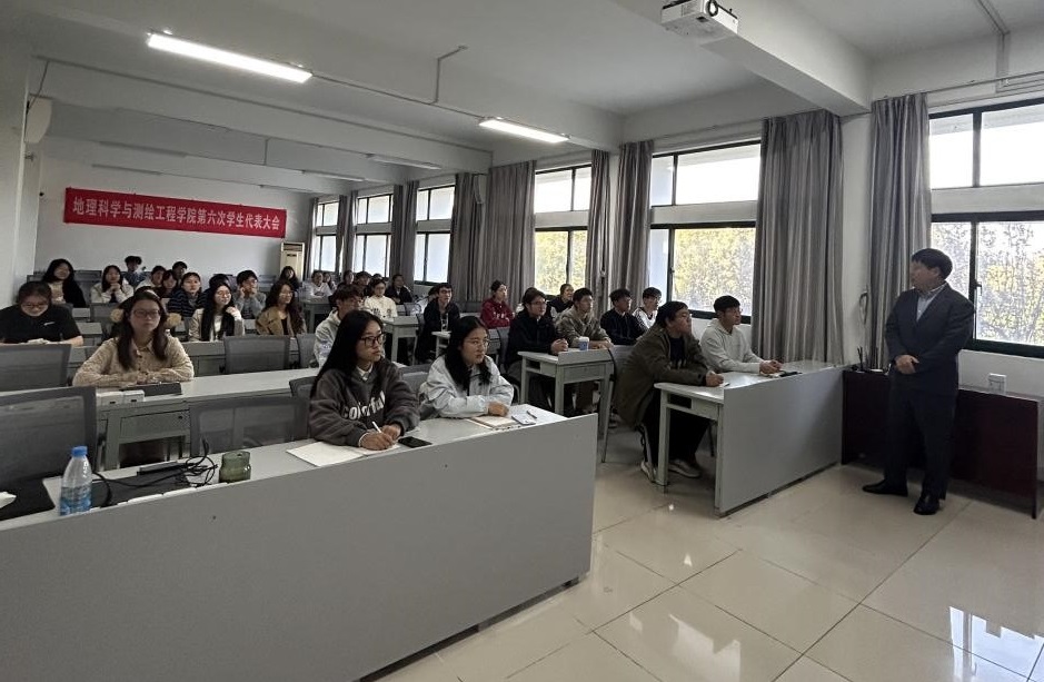 朱庆龙老师以其深厚的教学理论功底和一线教研的丰富经验,迅速吸引了全场学生的注意力。他指出,一节优秀的地理课,绝不仅仅是知识的简单传递,其灵魂在于教师独特教学理念的贯穿与引领。他强调,地理师范生作为未来的教师,应从学生时代起就有意识地培养和凝练自己的教学理念,并以此为核心进行课程的整体架构。朱老师还结合大量生动的教学案例,深入浅出地阐述了如何将“人地协调观”、“综合思维”、“区域认知”、“地理实践力”等核心素养融入课堂教学设计的每一个环节。他从教学目标的精准设定、教学情境的巧妙创设、学生活动的有效组织,到教学评价的多元设计,进行了系统而细致的讲解。朱老师特别指出,教学设计的过程本身就是一种重要的“成果”,鼓励同学们不仅要学会“设计课”,更要善于将优秀的设计转化为教学论文、案例、课件等物化成果,实现从实践到理论的升华,为未来的专业发展奠定坚实基础。