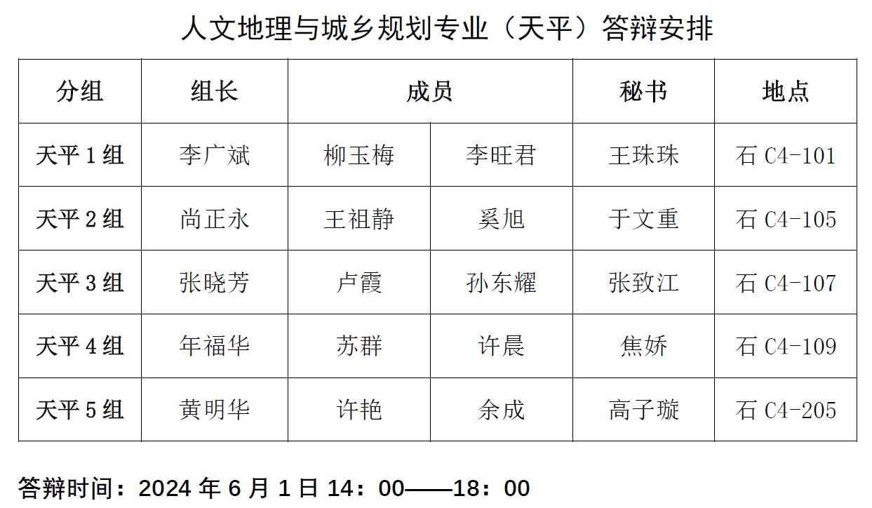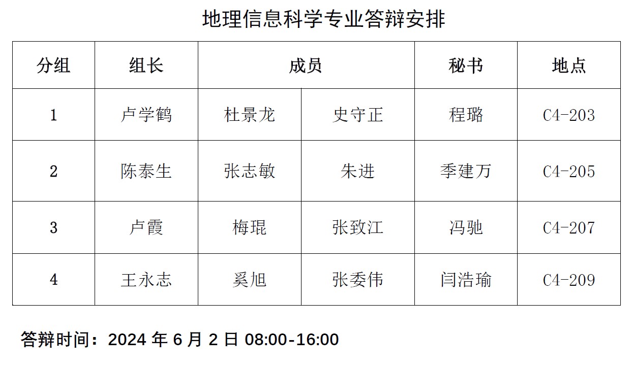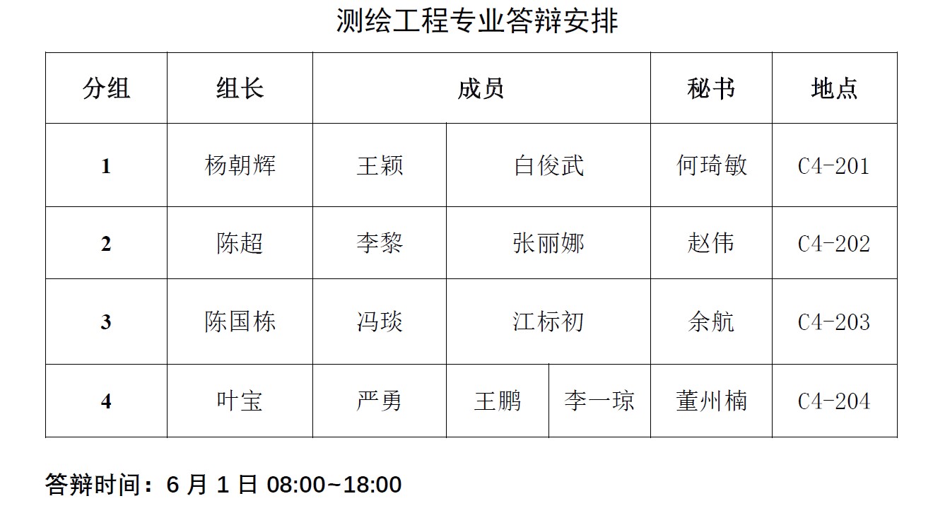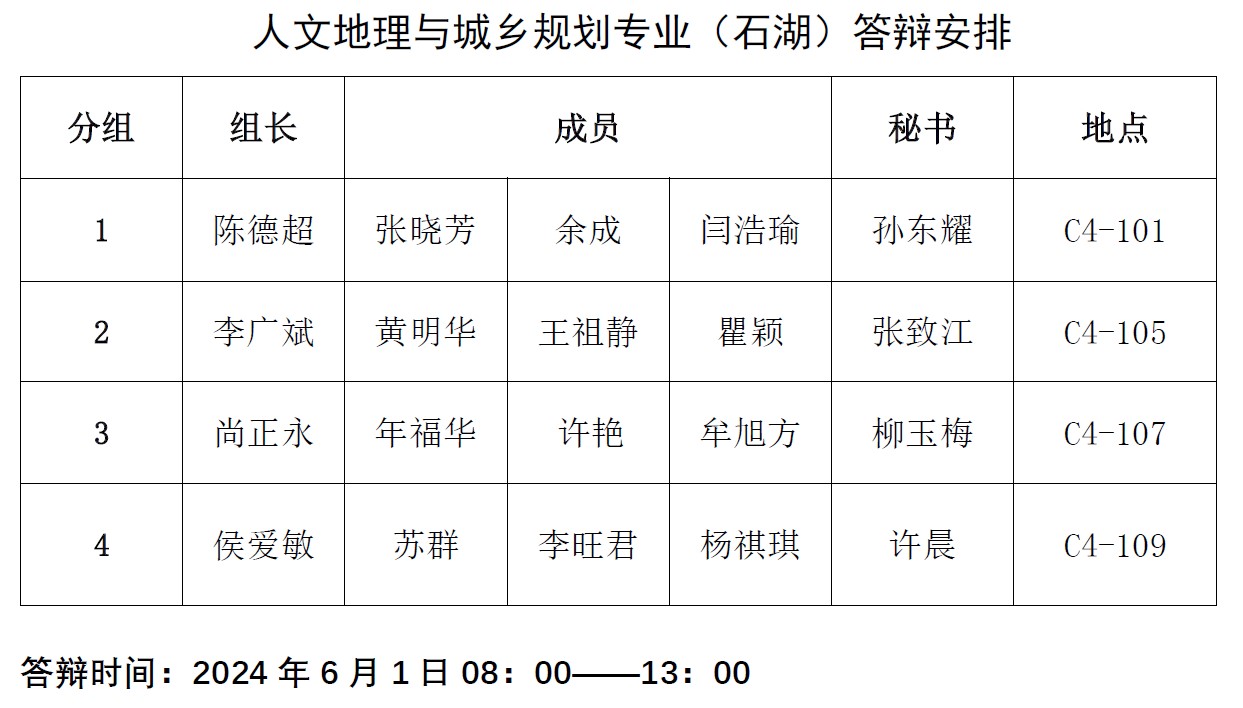 答辩分组安排: