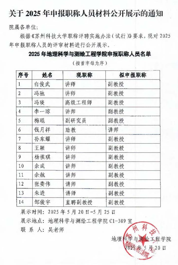 关于2025年申报职称人员材料公开展示的通知