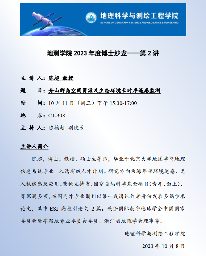 学术报告:舟山群岛空间资源及生态环境长时序遥感监测