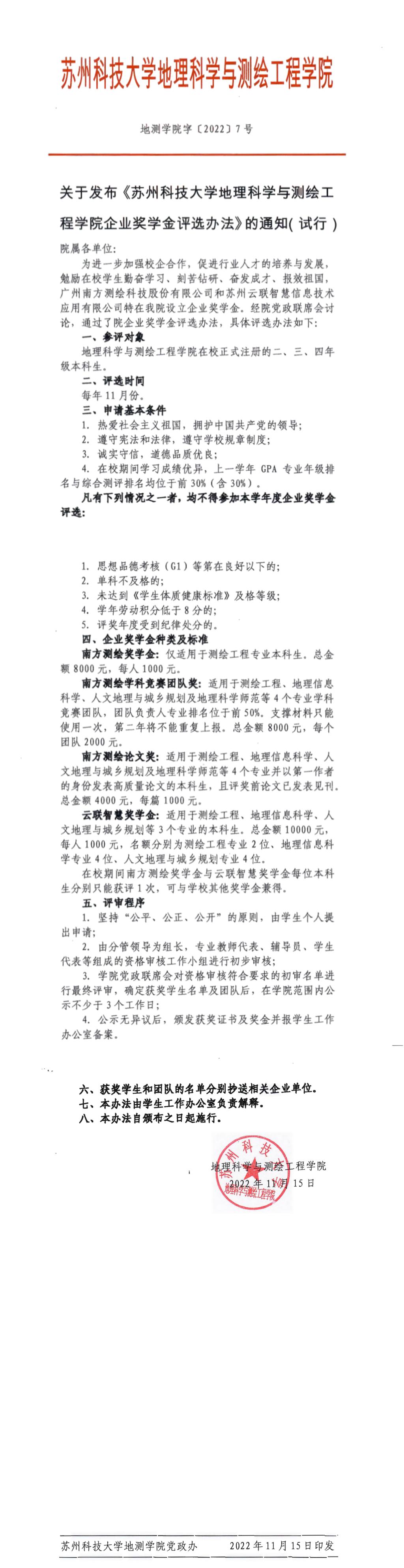 关于印发《蓝鲸体育官网 企业奖学金评选办法》(试行)的通知
