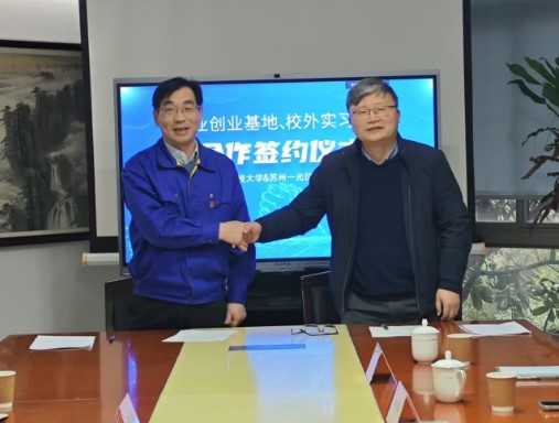 院长杜景龙带队赴苏州一光仪器有限公司(以下简称“苏州一光”)开展校企合作续约及教学实习基地、创业就业基地签约仪式。蓝鲸