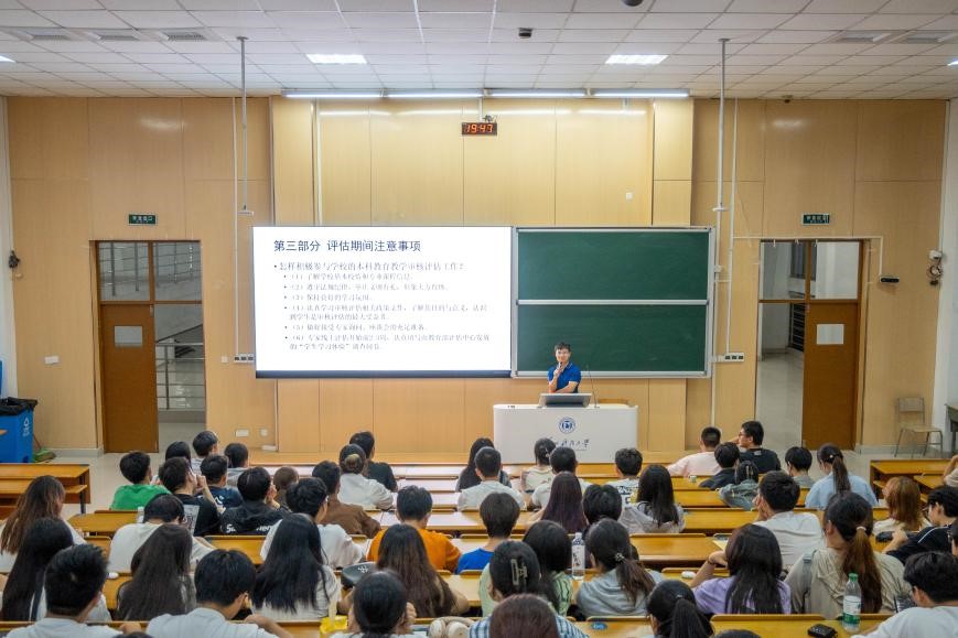 会上,杨朝辉针对本科教育教学审核评估应知应会做了详细解读,从审核评估基本常识、校情院情、评估期间注意事项等方面进行介绍,强调学生是新一轮审核评估的主要参与者和最大受益者,评估结果将直接关系到学生今后的发展,号召蓝鲸